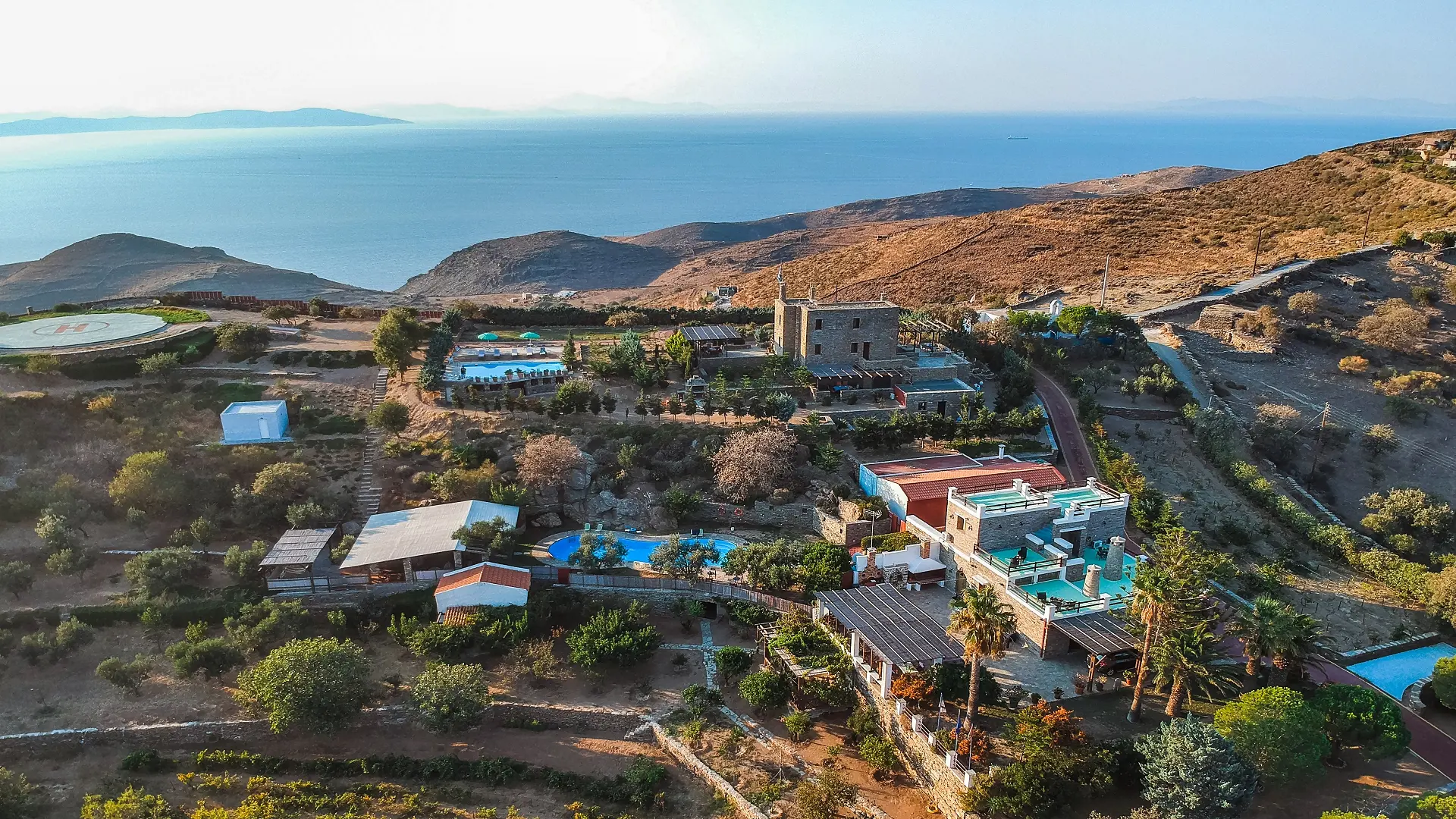 Spreading on a private land area of approximately 10 acres the villas benefit from the scenery of the estate – the vineyards, orchards, pine grove, olive groves, and the Aegean Sea views – all in the pure Cycladic landscape that invites for reflection.